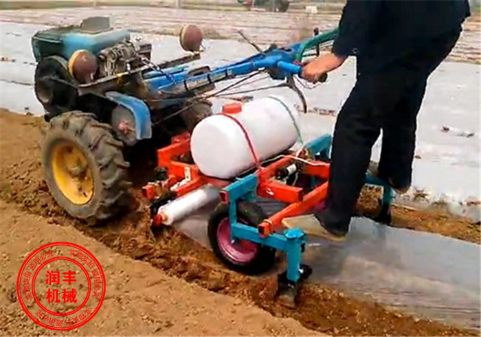 花生播種鋪膜機(jī)可單體作業(yè)也可聯(lián)合作業(yè),單體作業(yè),主要是直接掛接于拖拉機(jī)上在耕整的土地上作業(yè)。聯(lián)合作業(yè)通過動力輸出軸帶動刀軸旋耕,在由后覆膜播種機(jī)完成起壟、施肥、蓄水、播種、伏土、鎮(zhèn)壓、覆膜、膜上鎮(zhèn)壓土等。節(jié)水地膜覆蓋栽培技術(shù)是一項見效快,經(jīng)濟(jì)效益高的科學(xué)栽培技術(shù),它可以提高耕作層土壤的溫度改善耕作層的微氣候狀況,使土壤的水分,養(yǎng)分和近地層的微氣候狀況,向有利于作物生育的方向變化,從而人為地控制作物的生長,增加水分減少水分蒸發(fā),消除由于無霜期短春季干旱,低溫等不利因素對作物的影響使某些農(nóng)作物、經(jīng)濟(jì)作物、蔬菜和糧油作物提前成熟,改進(jìn)品質(zhì)提高產(chǎn)量,減少勞動強(qiáng)度提高工作效率,確保農(nóng)業(yè)的增產(chǎn)增收。