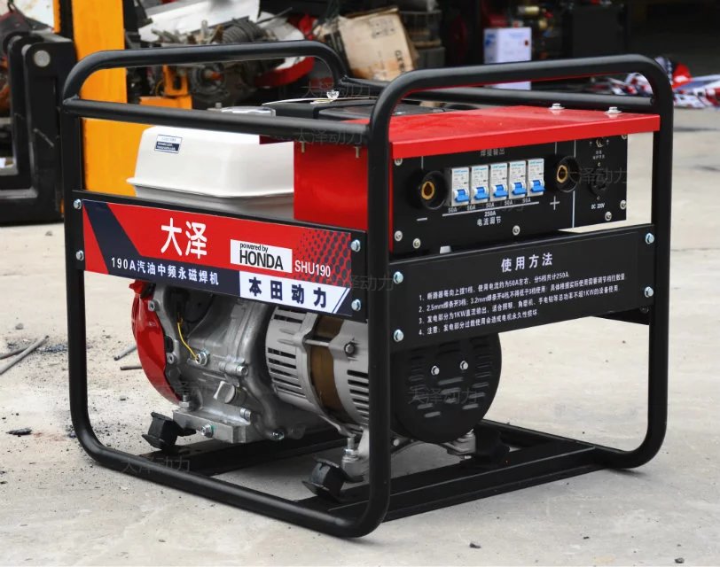 大澤動力發電電焊機,獨特的發電系統,重量輕,體積小,移動方便適合市政工程搶修,和野外工作應急,既能電焊也能發電,一機多用,使用壽命10年,采用工頻(焊接60Hz/發電50Hz)并取消了以前300焊機的整流橋和電抗器,使焊接電流更平穩焊接電流穩定,小電流焊接易起弧,焊接效果好,飛濺小,焊接成型美觀;輔助電源交流直流電2種 50HZ/220v/5Kw(50Hz/220v380V/5Kw),比原300焊機220v/5Kw功率更大;采用電子電位器調節焊接電流,在60-300A電流可調節,故障率更低,維修方便簡單。