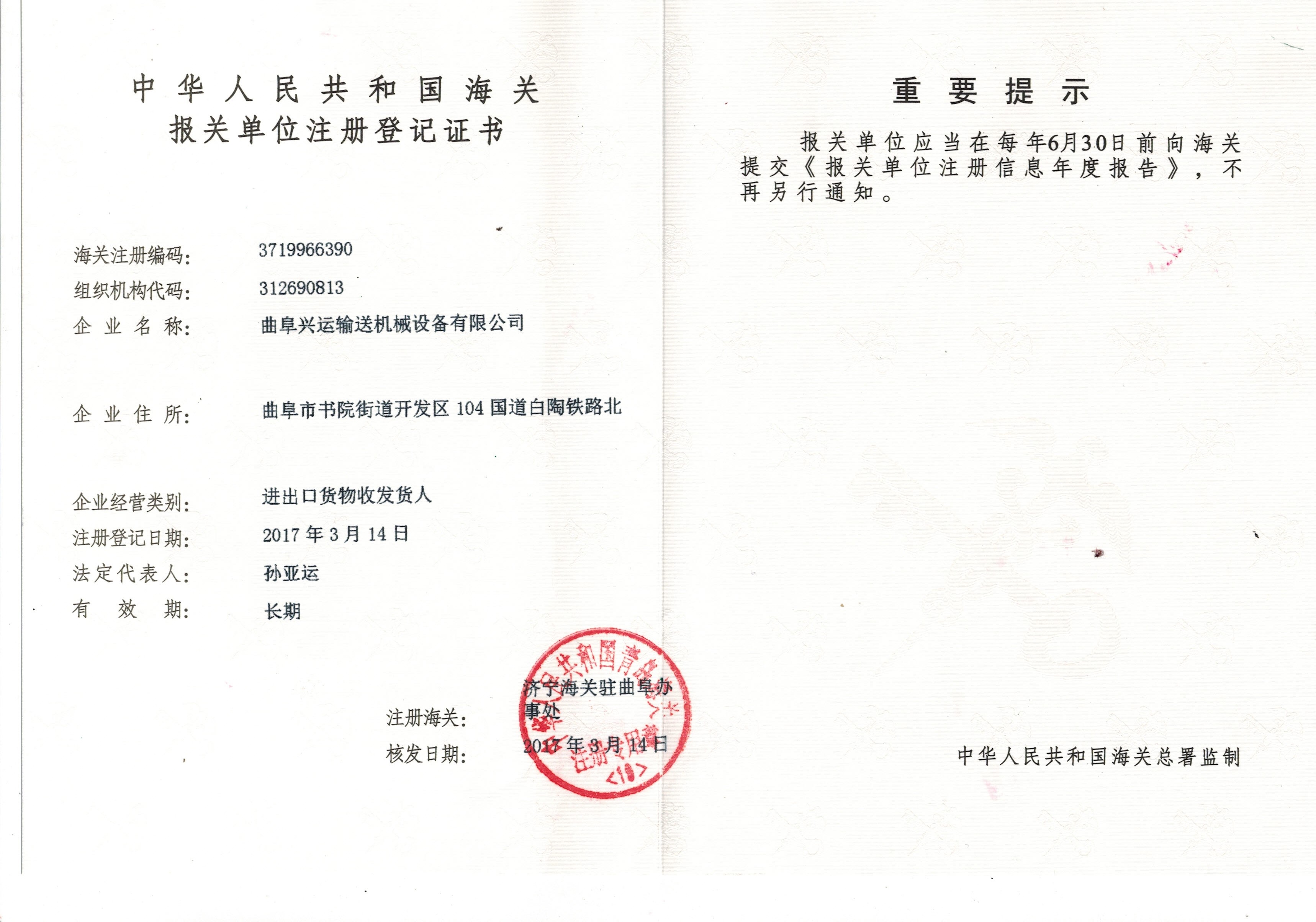 曲阜興運(yùn)輸送機(jī)械設(shè)備有限公司 地址:曲阜書院政府南一千米路西興運(yùn)輸送機(jī)械設(shè)備有限公司
