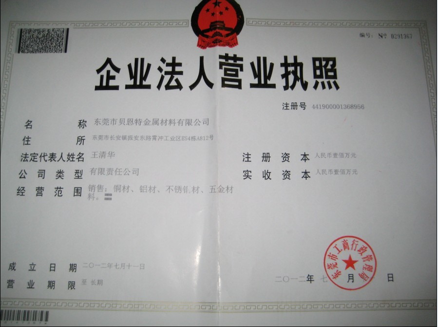 東莞市貝恩特金屬材料有限公司 地址:廣東省,東莞市,長(zhǎng)安鎮(zhèn),振安東路161號(hào)(宵邊碼頭紅綠燈路口)