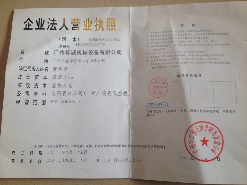 廣州標(biāo)誠機(jī)械設(shè)備有限公司 地址:廣州市荔灣區(qū)芳村大道西窖口村18號全棟,(窖口客運(yùn)站微八酒店正對面,空地后面,