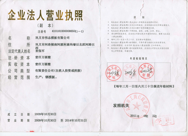 鞏義市偉志模板有限公司 地址:鞏義市南河渡鎮(zhèn)南河渡村康溝壕以北濱河路以西