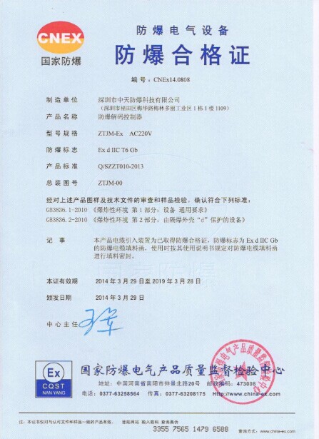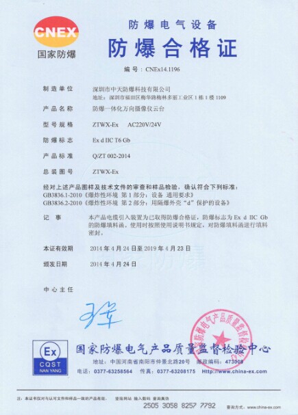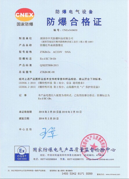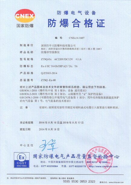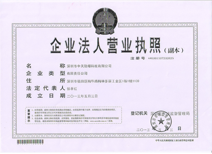 深圳市中天防爆科技有限公司 地址:深圳市福田區(qū)梅華多麗工業(yè)園