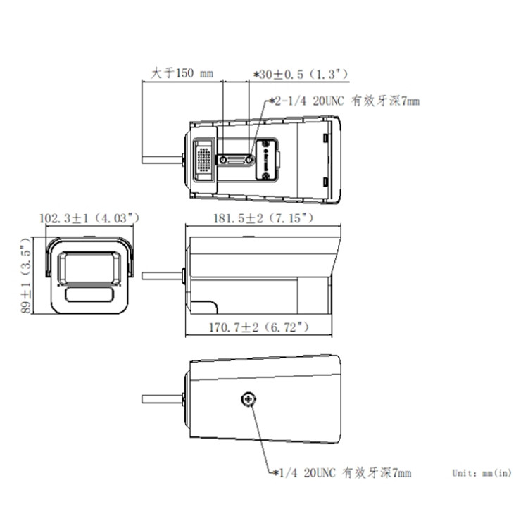 DS-2CD7T47DWDV3-LZ(S)(/Q1)(/JM) 海康威視400萬臻全彩1/1.8" CMOS輕智能筒型網絡攝像機 外形尺寸:
