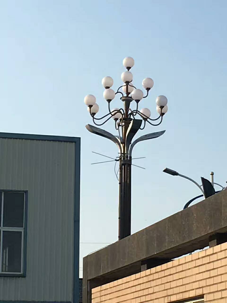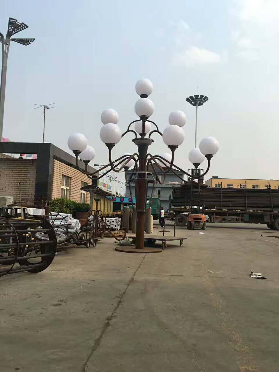 玉蘭燈分為8米、10米、12米、15米,有四叉五火,八叉九火等各種規格,有多個玉蘭形狀的光源,多見為6~12個,照明度高,景觀效果好。玉蘭燈外觀大方,燈罩為壓克力罩PC或者是進口PNNA有機材料,相似與中華燈 ,底座一般為鋁制或者是鐵制。燈桿一般為Q235鋼材卷制而成,工藝較簡單。