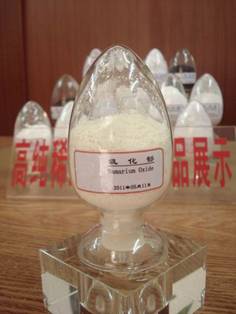 應用領域:釤呈淺黃色,是做釤鈷系永磁體的原料,釤鈷磁體是最早得到工業應用的稀土磁體。這種永磁體有SmCo5系和Sm2Co17系兩類。70年代前期發明了SmCo5系,后期發明了Sm2Co17系。現在是以后者的需求為主。釤鈷磁體所用的氧化釤的純度不需太高,從成本方面考慮,主要使用95%左右的產品。此外,氧化釤還用于陶瓷電容器和催化劑方面。另外,釤還具有核性質,可用作原子能反應堆的結構材料,屏敝材料和控制材料,使核裂變產生巨大的能量得以安全利用。